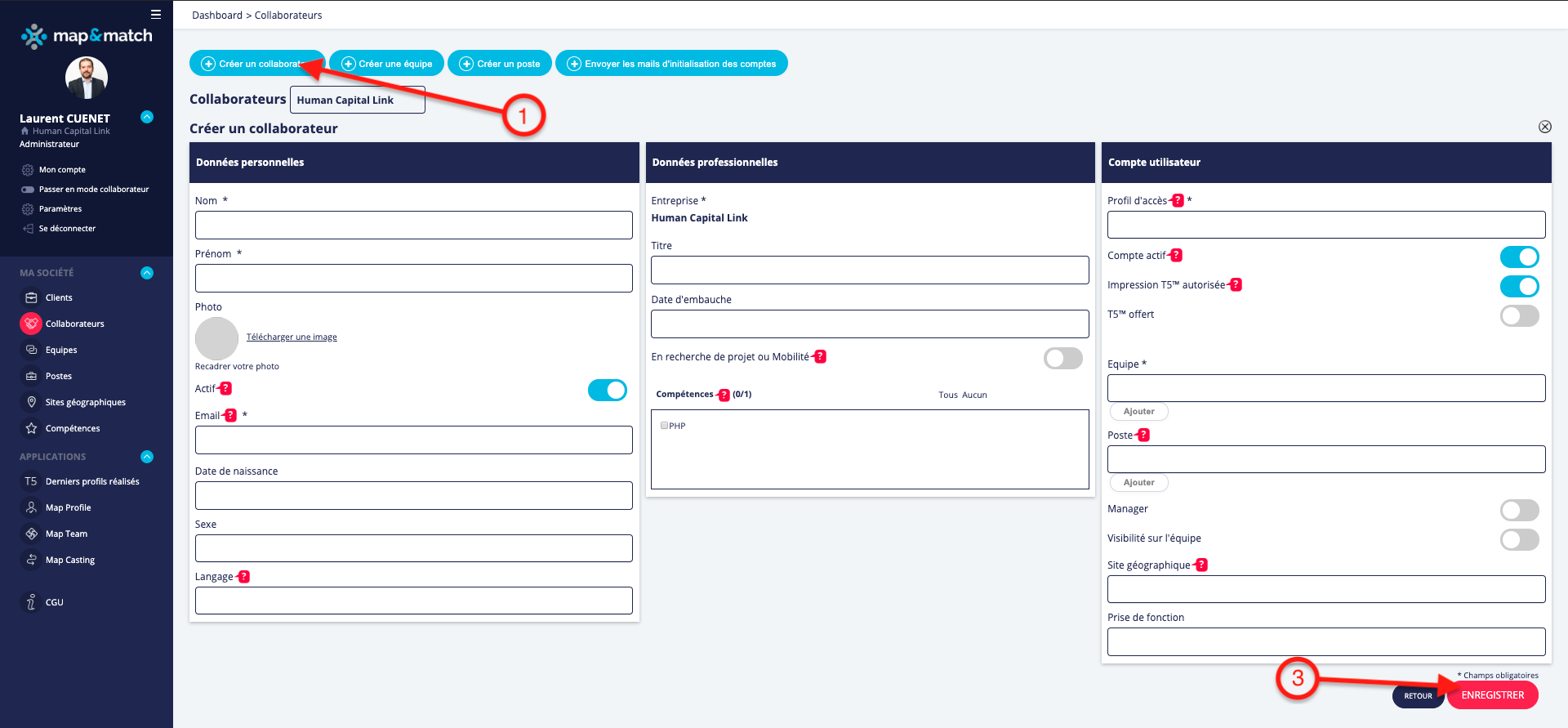 Prerequisites: to choose a team, you must first have created it, for more information consult the guide "Create a team".- You must also assign a position or complete the "Title" field.